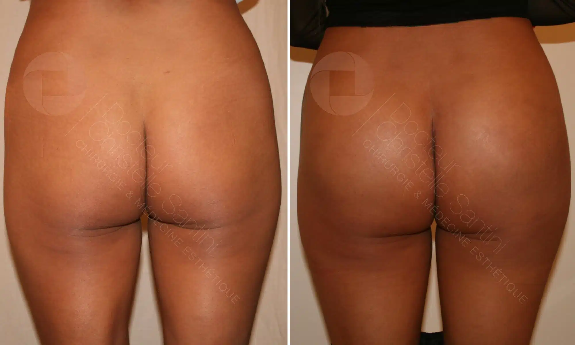 Découvrez les photos d’avant/après des interventions de pause de prothèses de fesses, acte pratiqué au cabinet du Dr Santini