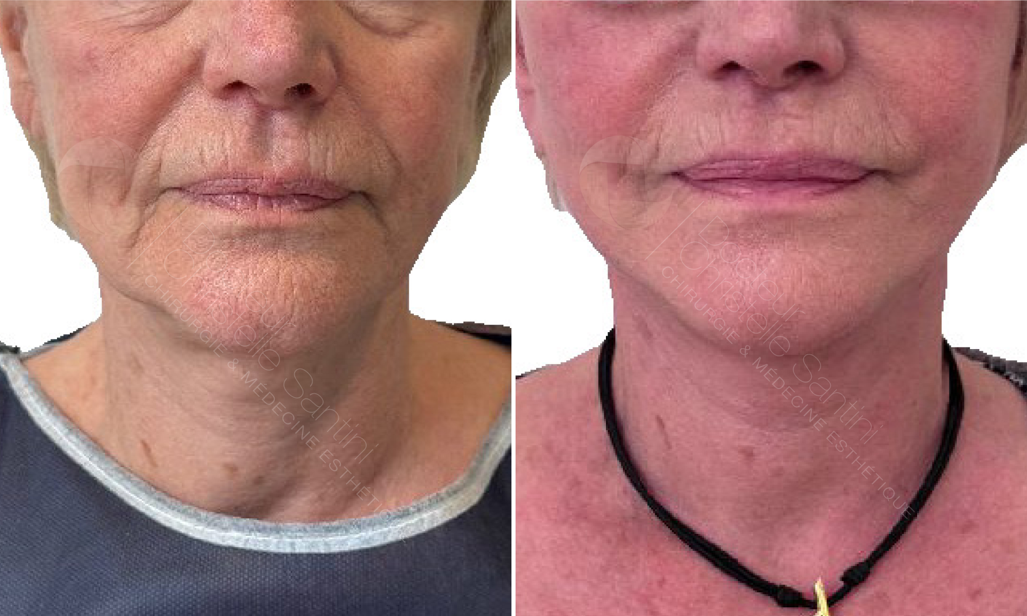 Lifting cervico-facial chez une patiente de 68 ans réalisé par le Docteur Santini chirurgien esthétique à Paris
